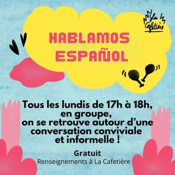 Les rencontres en espagnol se tiennent tous les lundis à 17:00 à La Cafetière ! Venez pratiquer, rencontrer de nouvelles personnes, en apprendre davantage sur l'Espagne ou l'Amérique latine au sein d'un groupe motivé et accueillant.