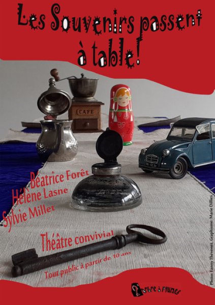 Trois bidouilleuses de souvenirs déboulent avec leurs valises, déroulent leur jeu de marelle et déballent leur bric-à-brac. Leur défi ? Que chacun.e reparte avec des souvenirs ravigotés, redorés, remplumés, rafistolés, recoiffés, revigorés…