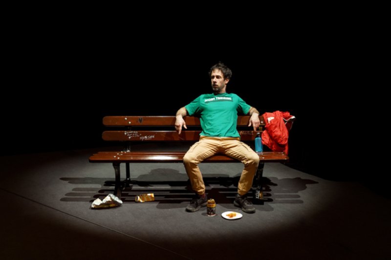Entre deux exercices de musculation, il vous livre un récit absurde et mordant (griffant ?) où se mêlent cirque et stand-up.