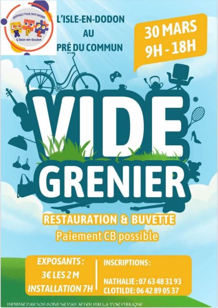 Exposants : 3 euros les 2m installation à 7h inscriptions 07 63 48 31 93 ou 06 42 89 05 37